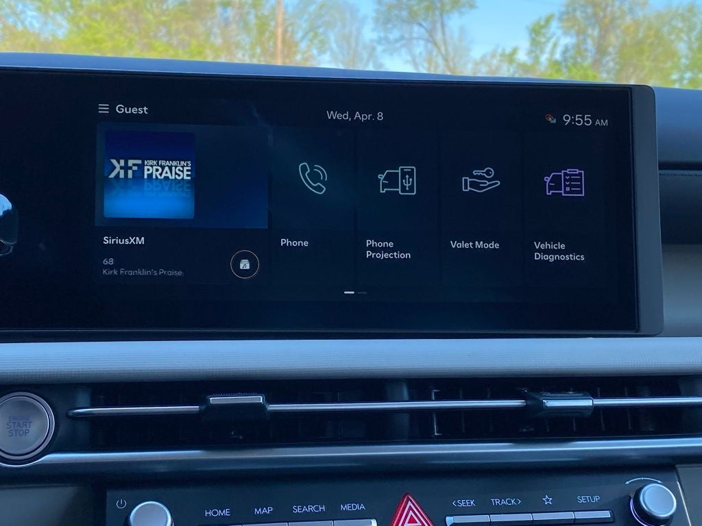- Radio: AM/FM/HD Audio System -inc: 12.3" color touchscreen display, 6 speakers, SiriusXM satellite radio system (3-month trial subscription), wireless Apple CarPlay and Android Auto integration, controller OTA update capability, Blue Link connected car system and USB connectivity