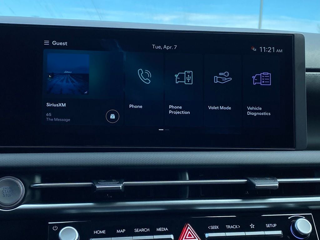 - Radio: AM/FM/HD Audio System -inc: 12.3" color touchscreen display, 6 speakers, SiriusXM satellite radio system (3-month trial subscription), wireless Apple CarPlay and Android Auto integration, controller OTA update capability, Blue Link connected car system and USB connectivity