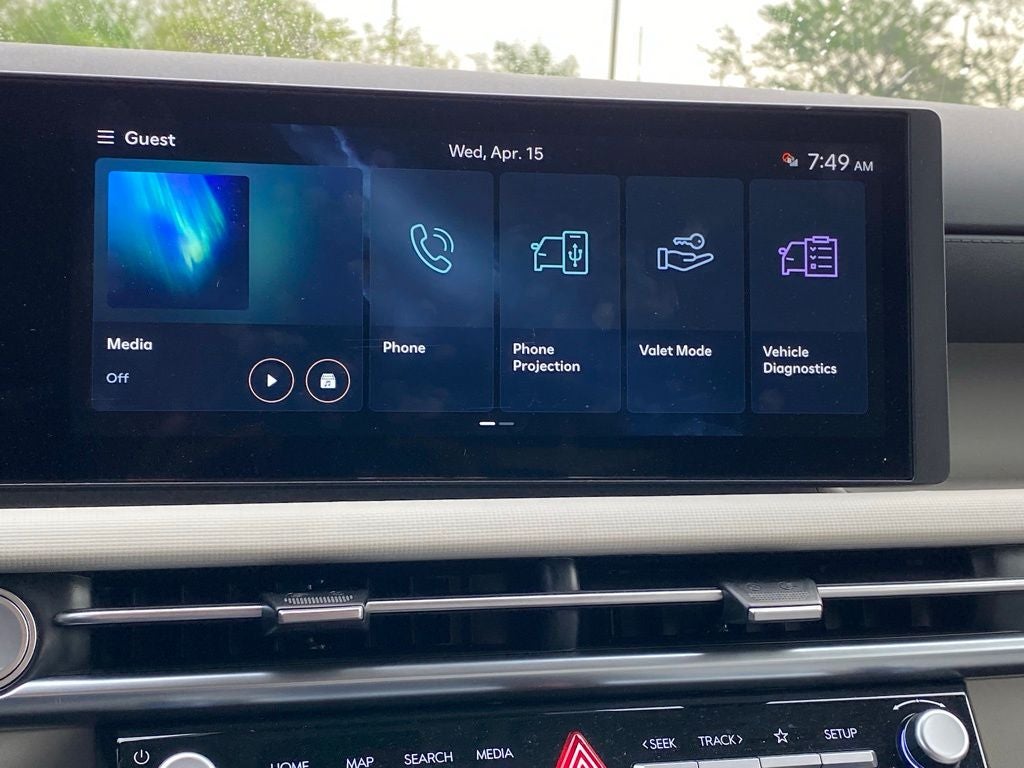 - Radio: AM/FM/HD Audio System -inc: 12.3" color touchscreen display, 6 speakers, SiriusXM satellite radio system (3-month trial subscription), wireless Apple CarPlay and Android Auto integration, controller OTA update capability, Blue Link connected car system and USB connectivity