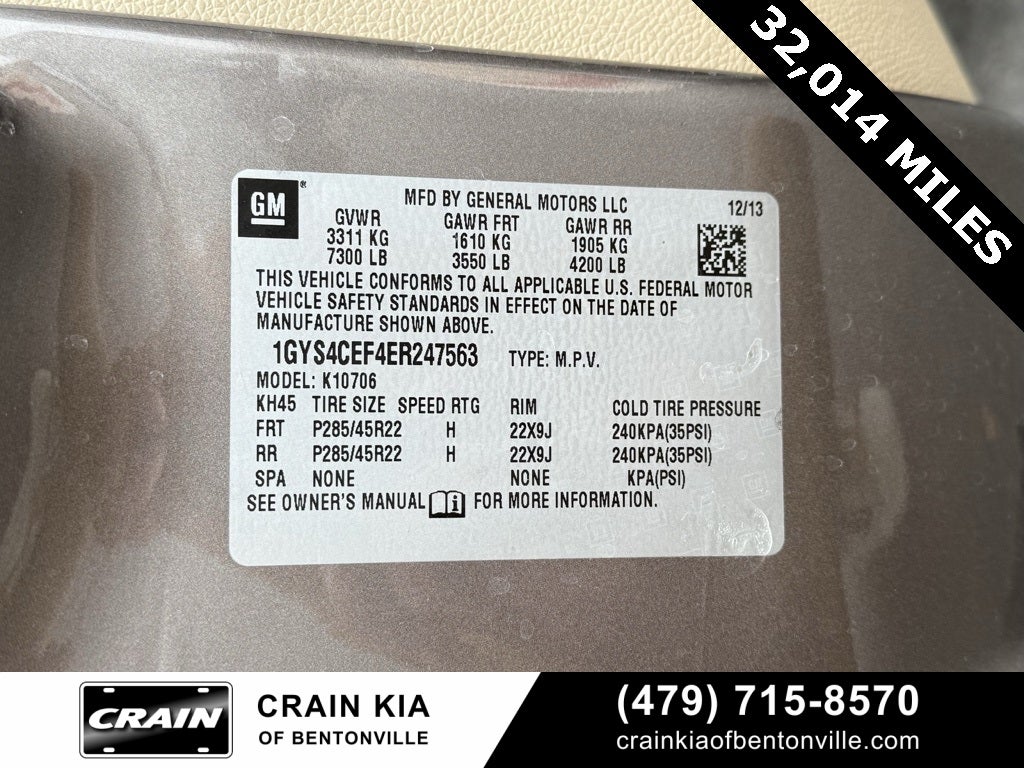 Clean Carfax, AWD, Cashmere W/Cocoa Accents Leather, 10 Speakers, 22 x 9 7-Spoke Ultra-Bright Aluminum Wheels, 2nd Row Power Seat Release, 3.42 Rear Axle Ratio, 3rd row seats: split-bench, 4-Wheel Disc Brakes, A/V remote, ABS brakes, Adaptive suspension, Adjustable pedals, Air Conditioning, Alloy wheels, AM/FM radio: SiriusXM, AM/FM Stereo w/Navigation, Auto High-beam Headlights, Auto tilt-away steering wheel, Auto-dimming door mirrors, Auto-dimming Rear-View mirror, Auto-leveling suspension, Automatic temperature control, Body Color Body Side Moldings, Body Color Door Handles, Bodyside moldings, Brake assist, Bumpers: body-color, CD player, Compass, Delay-off headlights, Driver door bin, Driver vanity mirror, Dual front impact airbags, Dual front side impact airbags, Dual-Outlet Stainless-Steel Exhaust, DVD-Audio, Electronic Stability Control, Emergency communication system: OnStar Directions & Connections, Exterior Parking Camera Rear, Front anti-roll bar, Front Bucket Seats, Front Center Armrest w/Storage, Front dual zone A/C, Front fog lights, Front License Plate Bracket, Front reading lights, Front wheel independent suspension, Fully automatic headlights, Garage door transmitter, Headphones, Heated & Cooled Front Bucket Seats, Heated door mirrors, Heated front seats, Heated rear seats, Heated Steering Wheel, Heated steering wheel, High intensity discharge headlights: Xenon, Illuminated entry, IntelliBeam Headlamps, Leather steering wheel, Low tire pressure warning, Magnetic Ride Control Suspension Package, Memory seat, Navigation System, NavTraffic, Nuance Leather Seating Surfaces, Occupant sensing airbag, Outside temperature display, Overhead airbag, Overhead console, Panic alarm, Passenger door bin, Passenger vanity mirror, Pedal memory, Power door mirrors, Power driver seat, Power Liftgate, Power moonroof, Power passenger seat, Power steering, Power Tilt-Sliding Sunroof w/Express-Open/Close, Power windows, Power-Retractable Assist Steps, Preferred Equipment Group 1SC, Radio data system, Rear 2-Piece Applique & Badge, Rear air conditioning, Rear anti-roll bar, Rear audio controls, Rear reading lights, Rear Seat Entertainment System, Rear window defroster, Rear window wiper, Remote keyless entry, Roof rack, Security system, Side Blind Zone Alert, SiriusXM Satellite Radio, Speed control, Split folding rear seat, Spoiler, Steering wheel memory, Steering wheel mounted audio controls, Tachometer, Tilt steering wheel, Tinted Clear CHMSL & Tail Lamps, Traction control, Trip computer, Turn signal indicator mirrors, Unique Body Color Upper & Lower Grilles, USB Port Audio System Feature, Variably intermittent wipers, Ventilated front seats.