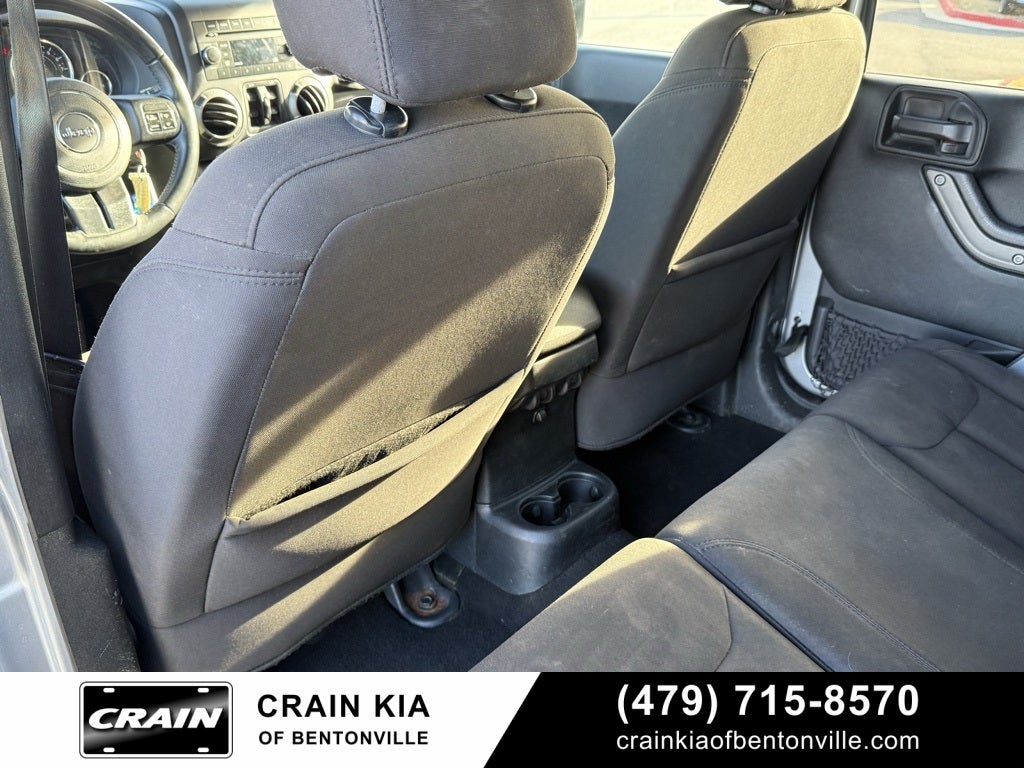 1-Yr SiriusXM Radio Service, 16 x 7.0 Luxury Styled Steel Wheels, 17 x 7.5 Aluminum Wheels, 3.21 Rear Axle Ratio, 4-Wheel Disc Brakes, 8 Speakers, ABS brakes, Air Conditioning, AM/FM radio, Auto-Dimming Mirror w/Reading Lamp, Black 3-Piece Hard Top, Brake assist, CD player, Chrome/Leather Wrapped Shift Knob, Cloth Seats w/Adjustable Head Restraints, Compass, Deep Tint Sunscreen Windows, Delete Sunrider Soft Top, Driver door bin, Driver vanity mirror, Dual front impact airbags, Electronic Stability Control, Freedom Panel Storage Bag, Front 1-Touch Down Power Windows, Front anti-roll bar, Front Bucket Seats, Front Center Armrest w/Storage, Front fog lights, Integrated roll-over protection, Leather Wrapped Steering Wheel, Low tire pressure warning, Manufacturer's Statement of Origin, Normal Duty Suspension, Occupant sensing airbag, Outside temperature display, Passenger door bin, Passenger vanity mirror, Power Convenience Group, Power Heated Mirrors, Power Locks, Power steering, Quick Order Package 24S, Radio: 130, Rear anti-roll bar, Rear Window Defroster, Rear Window Wiper/Washer, Remote Keyless Entry, Security Alarm, SIRIUS Satellite Radio, Speed control, Split folding rear seat, Steering wheel mounted audio controls, Tachometer, Tilt steering wheel, Traction control, Trip computer, Variably intermittent wipers.