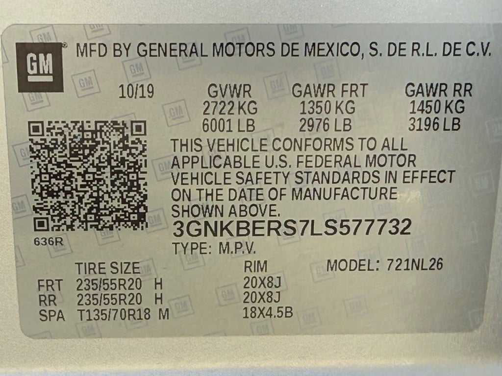 - Tires, P235/55R20 all-season blackwall