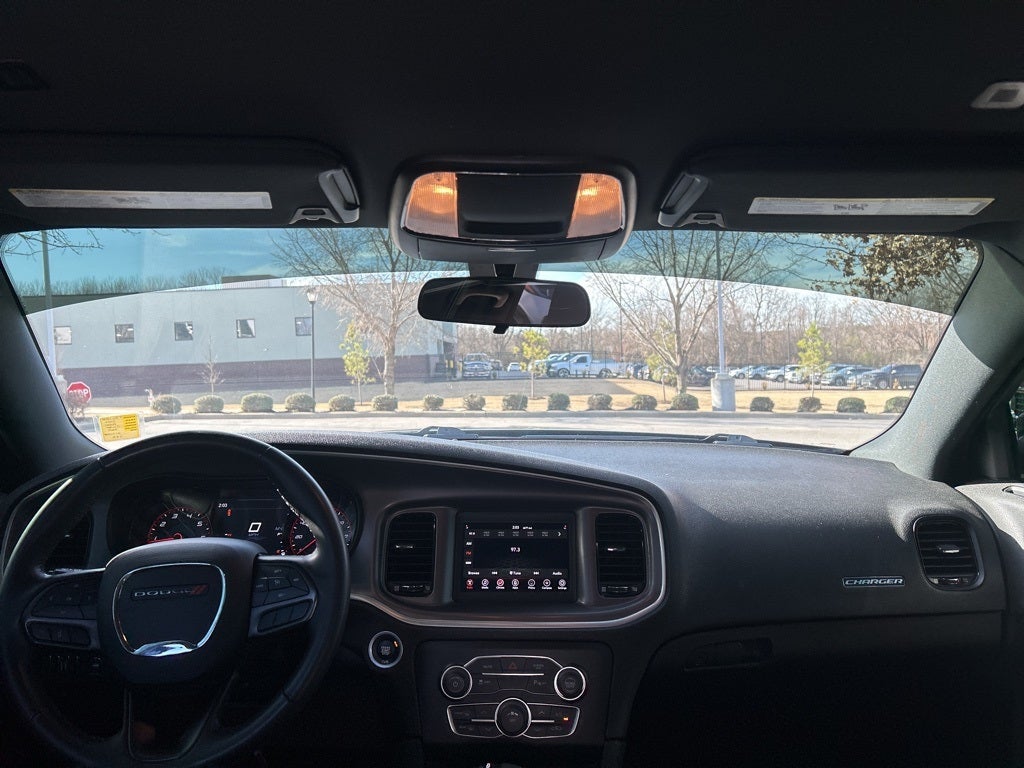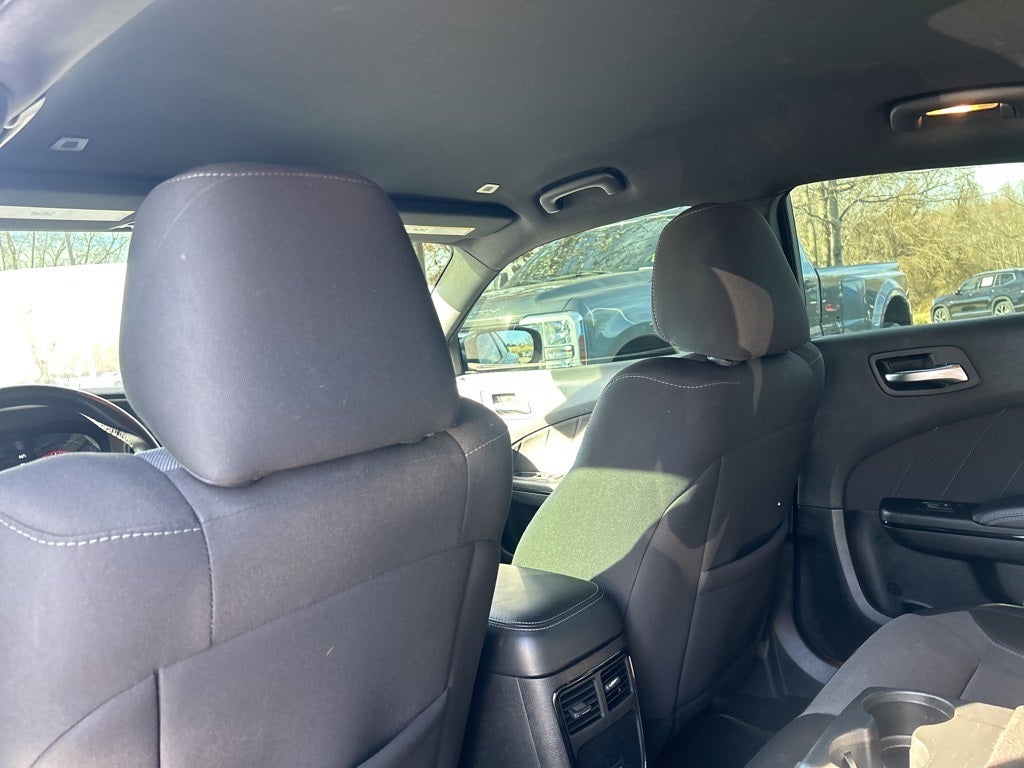 Black Cloth, 4-Wheel Disc Brakes, 6 Speakers, ABS brakes, Air Conditioning, AM/FM radio: SiriusXM, Anti-whiplash front head restraints, Apple CarPlay, Apple CarPlay/Android Auto, Black 1-Piece Performance Spoiler, Blind Spot Power Heated Mirror, Body Color Exterior Mirrors, Brake assist, Bumpers: body-color, Cloth Sport Seat, Compass, Delay-off headlights, Dodge Grille Badge, Driver door bin, Driver vanity mirror, Dual front impact airbags, Dual front side impact airbags, Electronic Stability Control, Four wheel independent suspension, Front anti-roll bar, Front dual zone A/C, Front reading lights, Fully automatic headlights, Gloss Black Fascia Applique, Gloss Black I/P Cluster Trim Rings, Google Android Auto, GPS Antenna Input, Integrated Center Stack Radio, Knee airbag, Low tire pressure warning, Media Hub (2 USB, AUX), Occupant sensing airbag, Overhead airbag, Panic alarm, ParkView Rear Back-Up Camera, Power 8-Way Driver Seat, Power door mirrors, Power driver seat, Power steering, Power windows, Radio: Uconnect 4 w/7 Display, Rear anti-roll bar, Rear window defroster, Remote keyless entry, Satin Black Charger Decklid Badge, Satin Black Dodge Tail Lamp Badge, Speed control, Steering wheel mounted audio controls, Traction control.