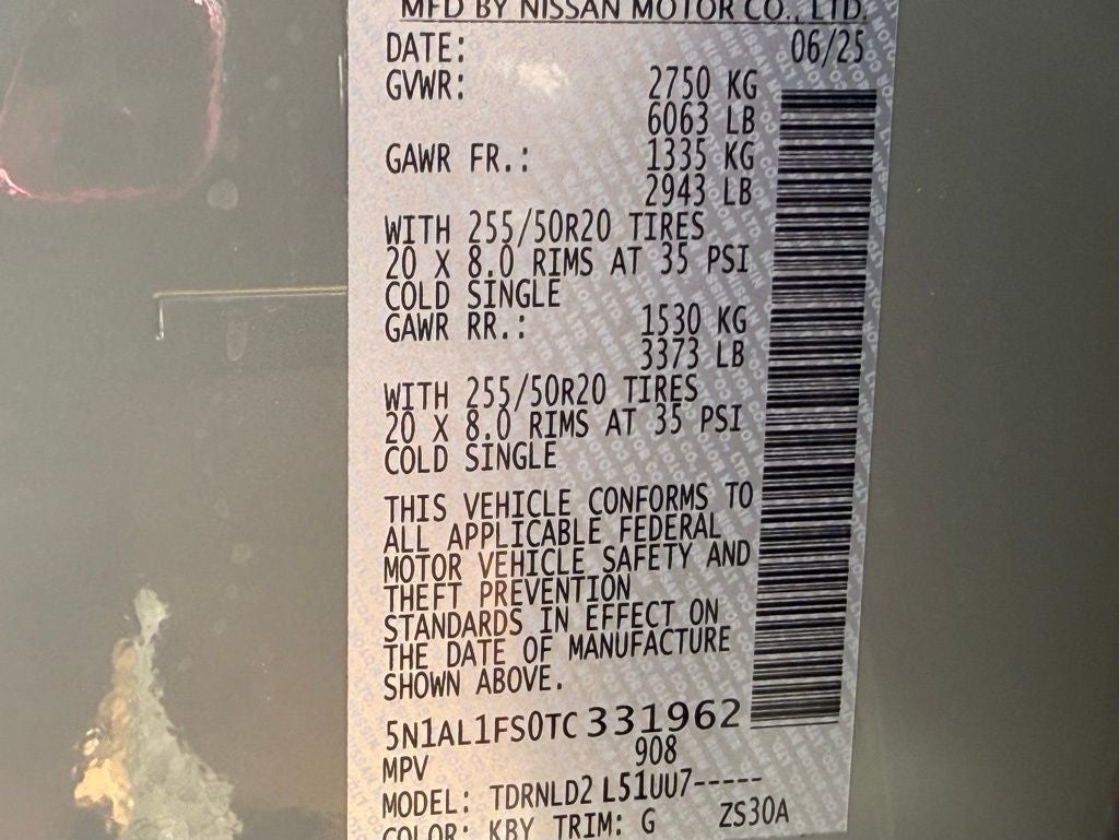 - Tires: P255/50R20 All-Season